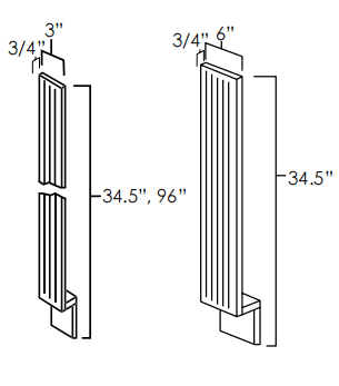 "Bristol Chocolate - Framed - Base Filler Flutted 3""W X 34.5""H X 3/4"" Thick. 3"" Wide Fillers Have 3 Flutes."