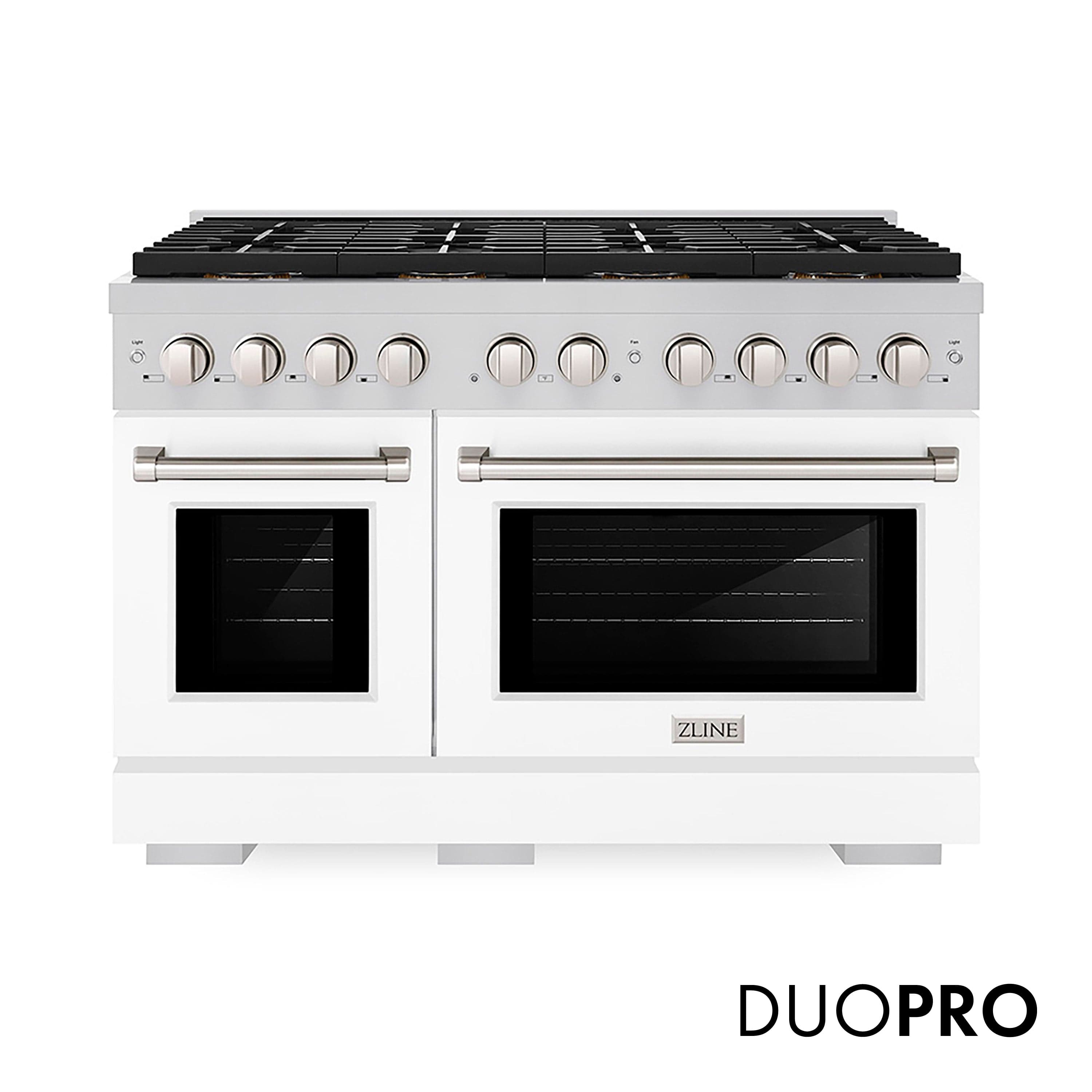 Range Hoods - ZLINE 48 in. 6.7 cu. ft. Paramount Dual Fuel Range with 8 Burner DuoPro Cooktop and Dual Ovens with White Matte Doors (PSDR-WM-48)