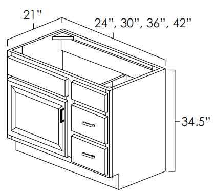 "West Point Grey - Framed - Single Door Vanity Cabinets 30""W X 21""D X 34.5""H With Drawer. When Indicating Right (R) Or Left (L)